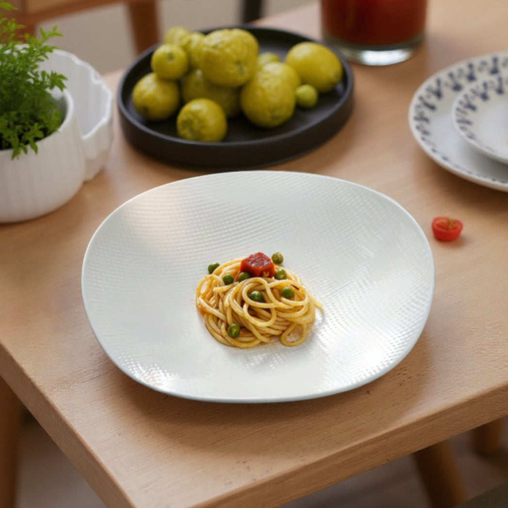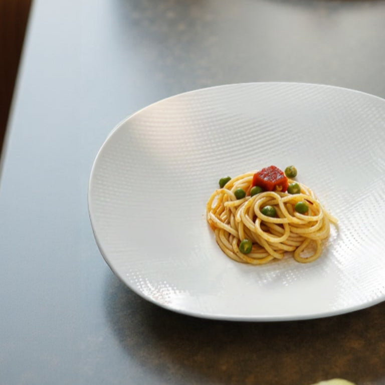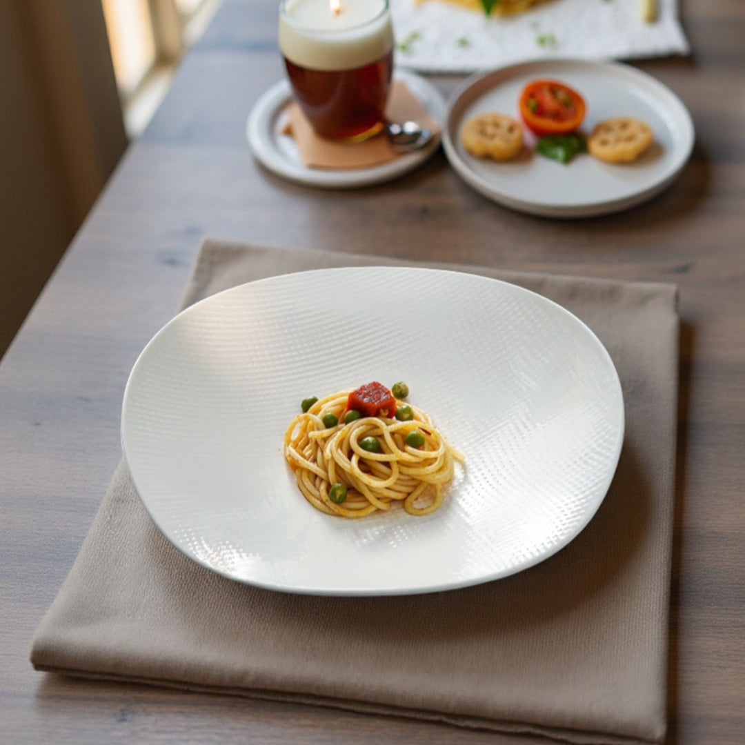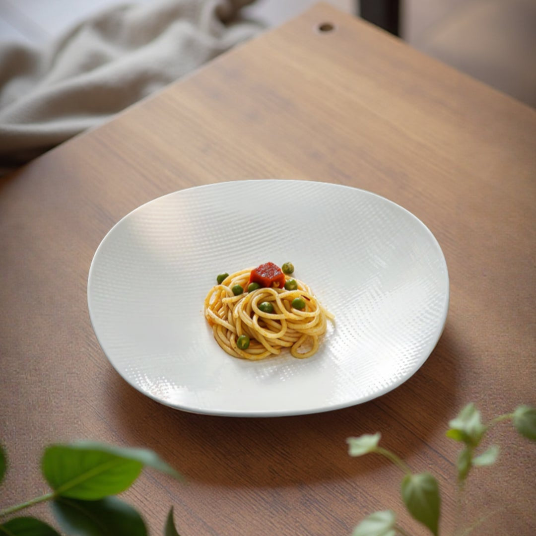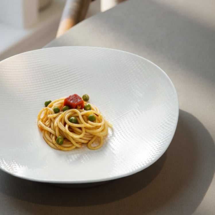 Its wide, slightly curved form beautifully frames any dish — perfect for gourmet presentations, from pasta and seafood to artistic entrées. Crafted from high-quality ceramic, it ensures durability and a refined aesthetic ideal for upscale restaurants, special occasions, or stylish home dining.