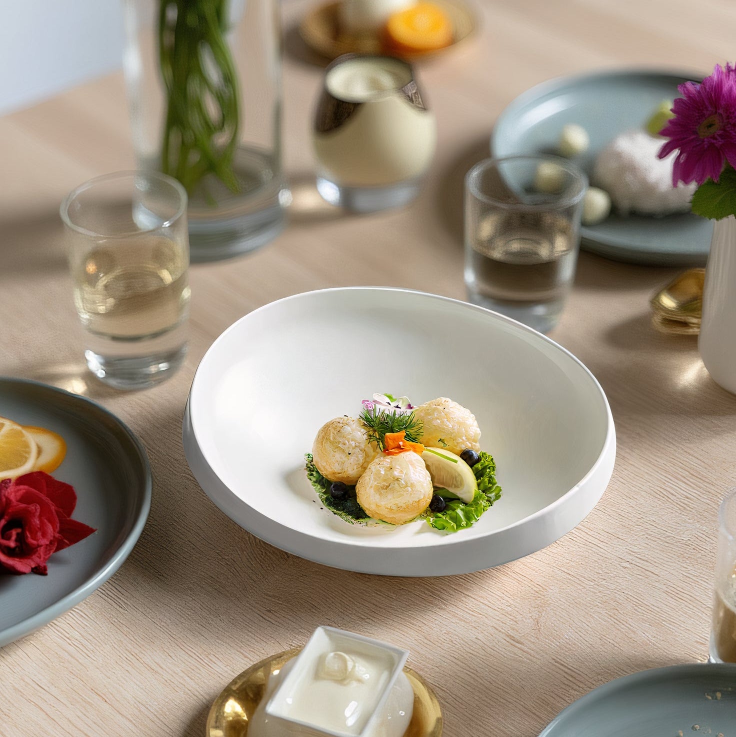 Whether you're serving salads, pasta, appetizers, or contemporary gourmet creations, this bowl transforms every meal into a refined experience. Crafted with durability and understated style in mind, it complements any table setting from casual brunches to fine dining.